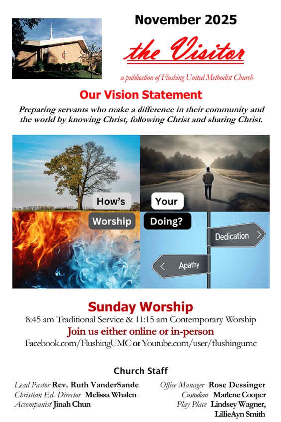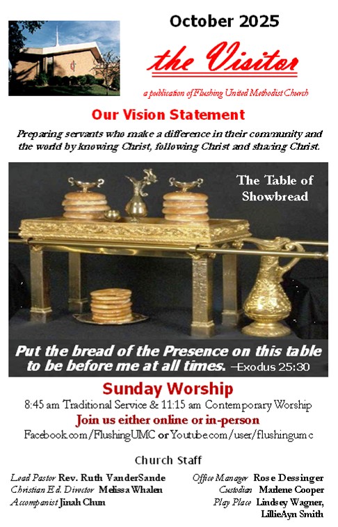 The Visitor is a monthly newsletter that contains celebrations, announcements, a monthly calendar, letter from the pastor, and updates from most ministry areas of the church (and more!)